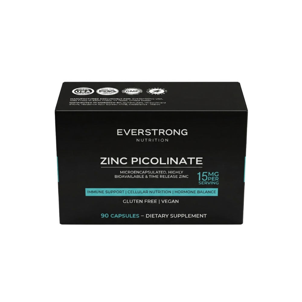 Zinc Picolinate Everstrong est un complément alimentaire contenant du zinc sous forme de picolinate, connue pour sa haute biodisponibilité (meilleure absorption)
